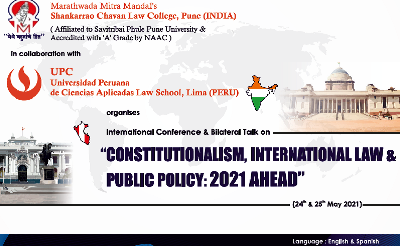 5. Universidad Peruana de Ciencias Aplicadas (UPC), Lima (PERU) 24th & 25th May, 2021 (Mode: Online) International Conference & Bilateral Talk on ‘Constitutionalism, International Law & Public Policy: 2021 Ahead’ No. of Participants: 250 No. of Paper Presentation: 16