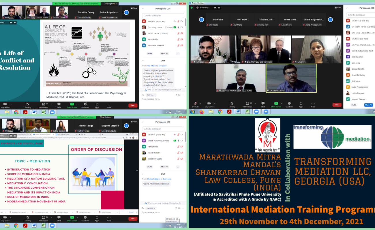 2. Transforming Mediation, Georgia, United States of America 29th November – 4th December, 2021 30 Hours International Mediation Training Programme (Online)